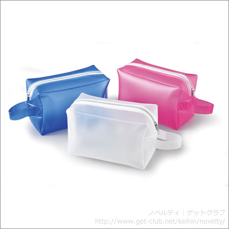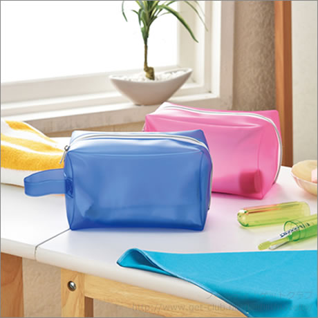 ジムで使ったあとの濡れたタオルを入れてもOK。旅行やプールなどのレジャーにも持っていきたい中身がわかるポーチです。
