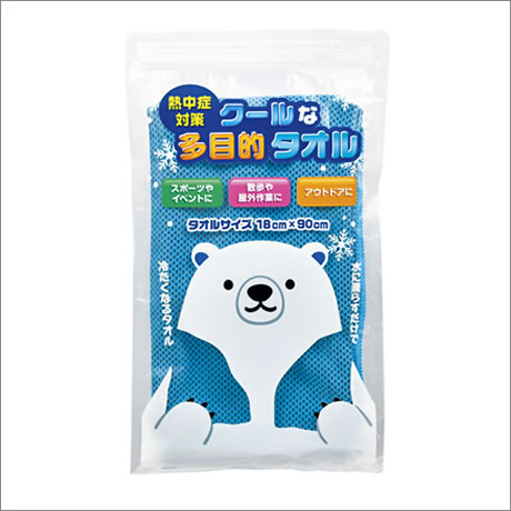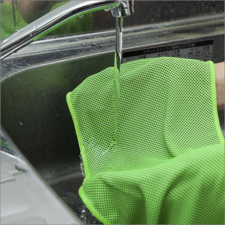 水に濡らすだけで冷たくなっちゃう!肩にかけたり頭に巻ける便利なサイズです。