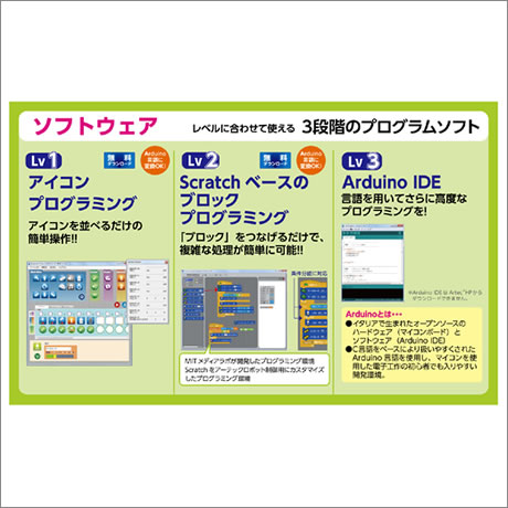 基本パーツのセットで、ロボティストの基本を学びつつ、様々なロボットが作れます!