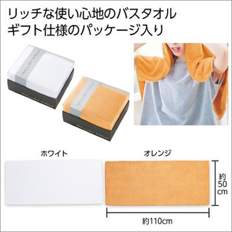 毎日使いたくなるふわふわの手触りのバスタオルです。ハイセンスなギフトパッケージが格調高く演出します。