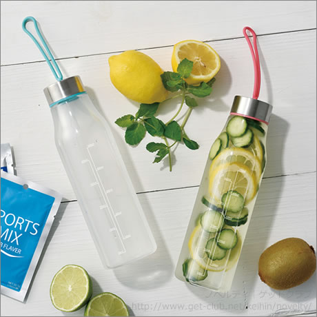 目盛付の中身の見えるクリアボトルで簡単にアレンジドリンク。