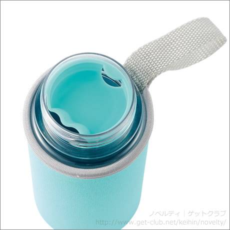 女性の持ち歩きにちょうどいいコンパクトサイズのクリアボトル。氷やティーバッグをのこぼれ落ちを防いでくれるストッパー、クールもホットも快適な厚手のポーチ付き。名入れにもオススメです♪今日は何のドリンクを持ち歩こう?