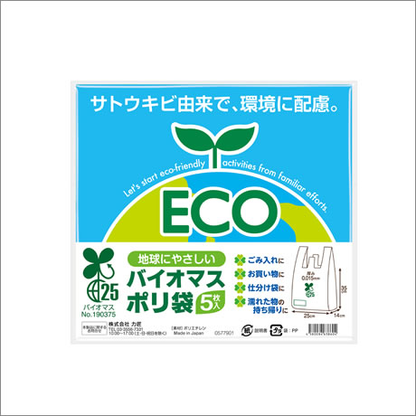 ホーム > ノベルティ >  エコグッズ  >  地球にやさしい バイオマス25%ポリ袋(5枚入り)