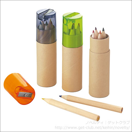 オレンジ・グリーン・ネイビーのカラフルなスケルトンカラーが楽しい色鉛筆6本セット。ふたの部分に鉛筆削りが付き、さらに便利にお使いいただけます。