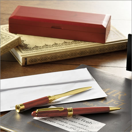 豪奢な紫檀(ローズウッド)を使用したボールペンとペーパーナイフのセット。