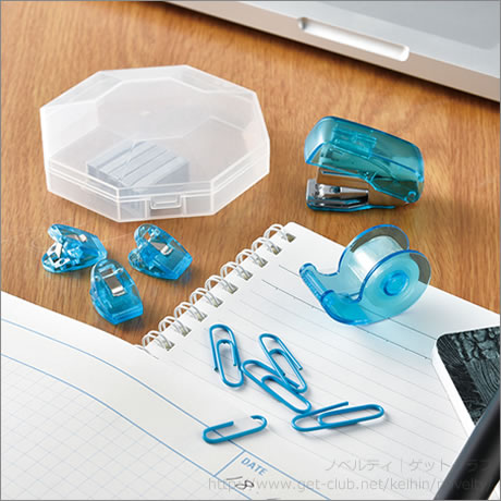 セット内容:内容/ステープラー・ステープラー芯10ヶ・テープ・クリップ3ヶ・ゼムクリップ5ヶ・ケース