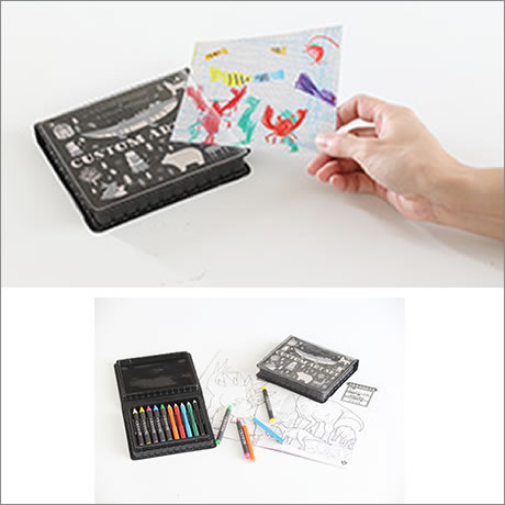 自分で描いた絵を差し込み、世界で一つだけのアートセットができるかわいいお絵かきセット。