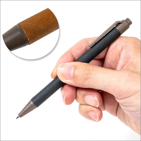 通常廃棄されるコーヒー殻を再利用した環境配慮型ボールペン。