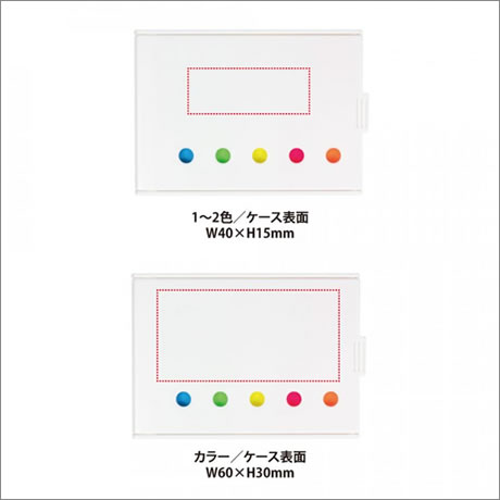 別途見積■2色パッド印刷、ケース表面:W60×H30mm(インクジェット印刷) 200個からの印刷もできます。お見積り御依頼ください。 |