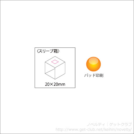 備考 名入れサイズ スリーブ箱上パッド印刷20×20mm