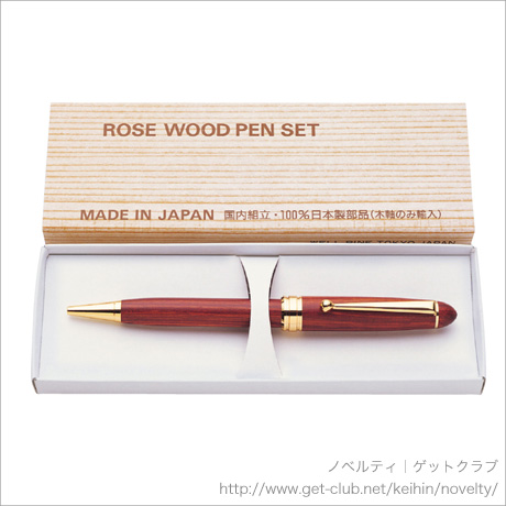木軸以外は100%国産パーツ、国内で組み立てたボールペン1本入りです