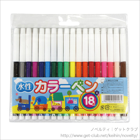 キャップ付水性マーカー18色がセットになったお絵かき・図工に便利なセットです。