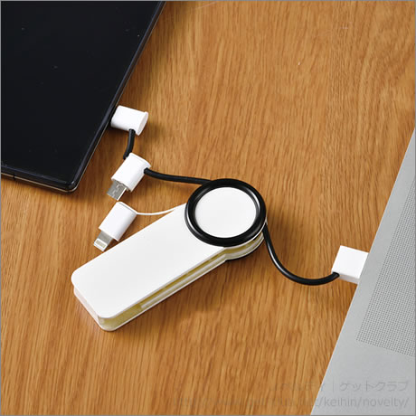 スマホ世代の必需品。これ一つで3種類の充電に対応します。