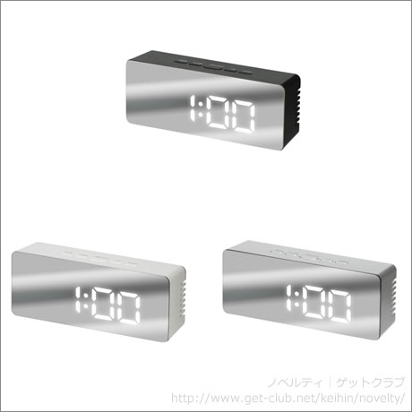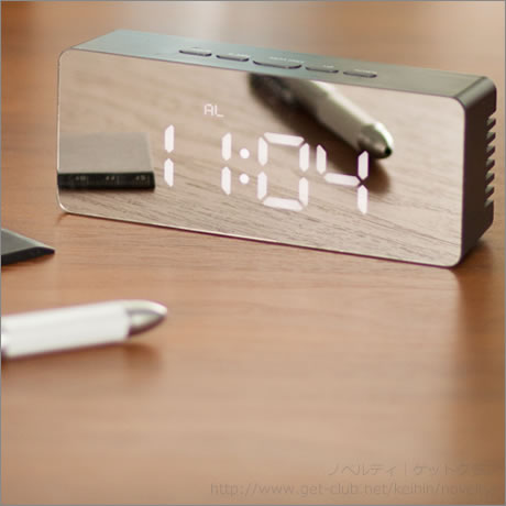 スタイリッシュなデザインのLED時計。お出かけ前に時間を確認しつつも、身だしなみチェックができるオシャレ+便利な置き時計です。