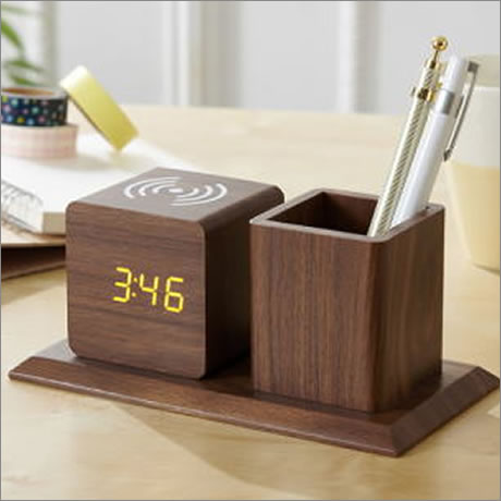 ペンホルダー付ワイヤレス充電クロック ダイス