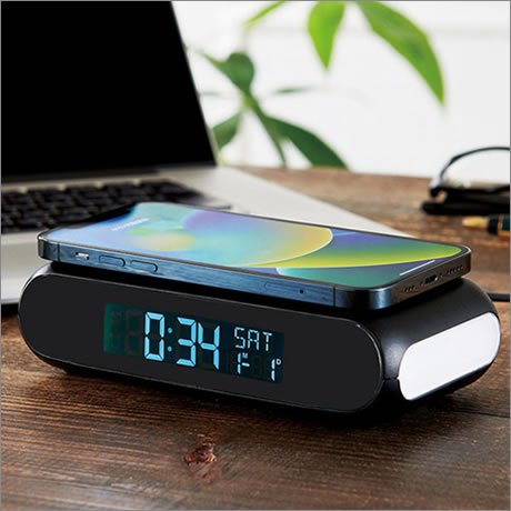 qi対応のスマートフォンを置くだけで充電できる、ワイヤレス充電機能付の時計です。