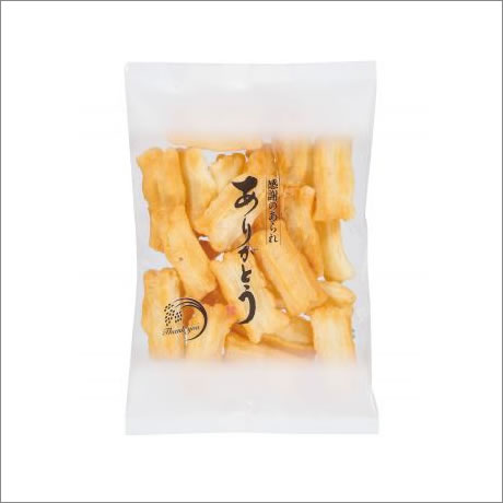原料に国産もち米を100%使用した、こんがりきつね色に焼き上げたのち塩味に仕上げた米菓です。本格米菓でありながらサクッとした食感で、お年寄りでも無理なく食べていただけます。
