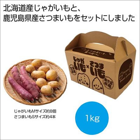北海道産じゃがいもと鹿児島県産さつまいもをそれぞれセットにした、いも×いもギフト商品です。