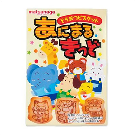 12種類のどうぶつがプリントされたかわいらしいビスケットです。