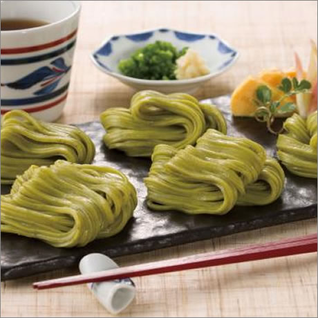 香川県産の希少種の高瀬茶の粉末を練り込んだ、風味豊かでのど越し抜群のうどんです。