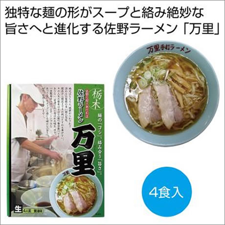 独特な麺の形がスープと絡み絶妙な旨さへと進化する佐野ラーメン「万里」。