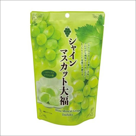 シャインマスカットの上品な甘味とさわやかな風味が特徴のもっちりとした食感のおもちです。