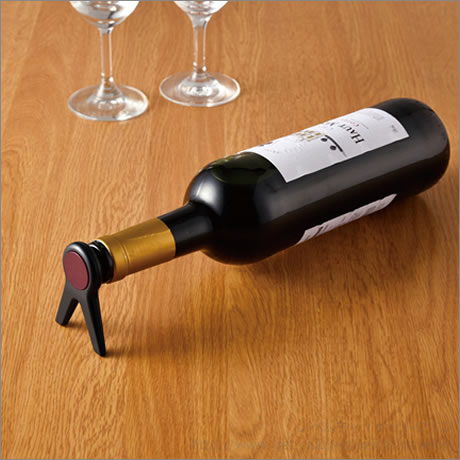 スタンド付きのボトルストッパー。 ボトルを横置きするのに便利です。