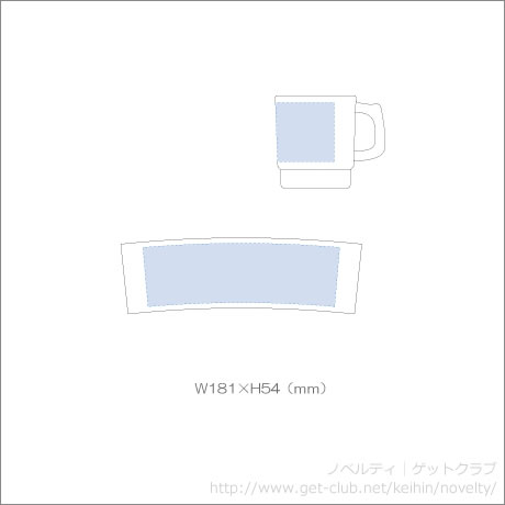 耐熱温度140℃、食品衛生検査済、電子レンジ対応可 昇華転写レイアウト可能範囲/W181×H54(mm)印刷範囲/W181×H54(mm) |