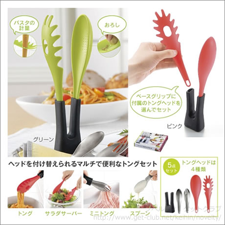 パスタメジャー、トング、サラダサーバーにミニトングにもなります。