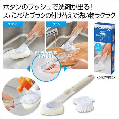 洗剤が出るキッチンお掃除スポンジ&ブラシ