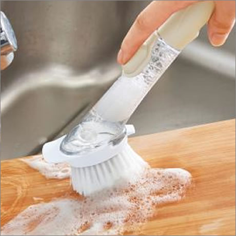 洗い物中に洗剤を追加する際も持ち替えの手間がなく便利です。付け替え可能なブラシとスポンジが付属し、食器やシンクなどさまざまな場所で活躍します。