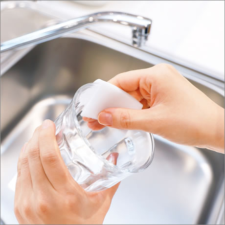 曲面や細かな凹凸も掃除ができる薄いシート状の優秀メラミンスポンジ。
