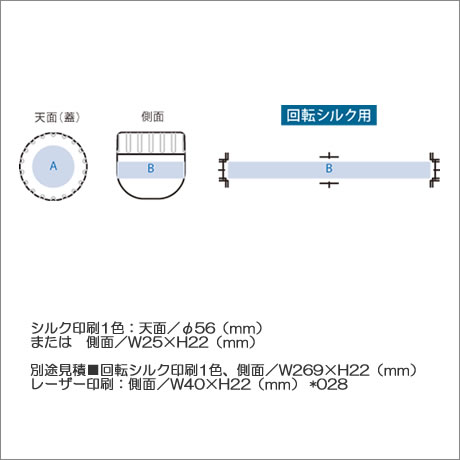 備考 シルク印刷1色:天面/φ56(mm) または 側面/W25×H22(mm)