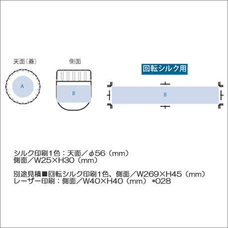 シルク印刷1色:天面/φ56(mm) 側面/W25×H30(mm)