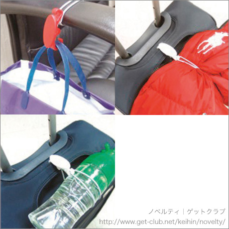 旅行時のキャリーバッグやイスの肘掛けなどに装着して、ぺっどボトルや上着、バッグなどが3kgまで掛けられます。