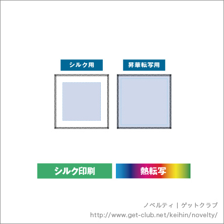 レイアウト可能範囲シルク/W140×H140(mm)、昇華転写/W200×H200(mm)印刷範囲W70×H70(mm) 転写印刷は別途御見積になります。 |