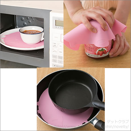 キャップオープナー、電子レンジの汚れ防止、傷防止、滑り止めに使えます。わずか0.6mmのこのシリコンマットが、とっても働き物!