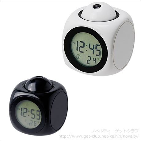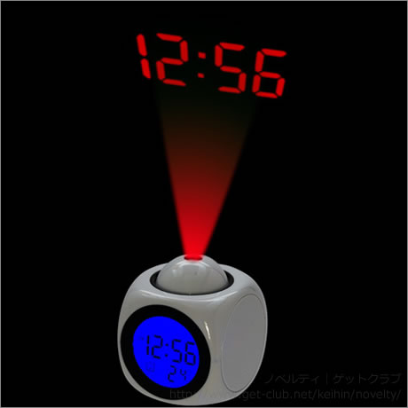 アタマの丸いスイッチを押すと音声で時刻をお知らせ。プロジェクターライト機能もついています。