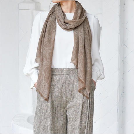 毎年人気、ジャガード織のペイズリー柄が際立つ上品なストール。
