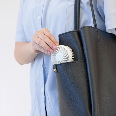 持ち運びのしやすい、本当に手のひらサイズ。小型で軽量の持ち歩くために開発された扇風機。