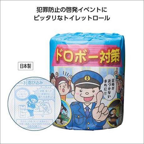 ひったくりやドロボウー対策、ドロボー手口のあれこれがプリントされたトイレットローです。