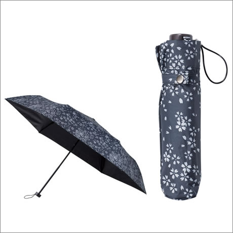 落ち着いたモノクロ和柄の晴雨兼用折りたたみ傘。