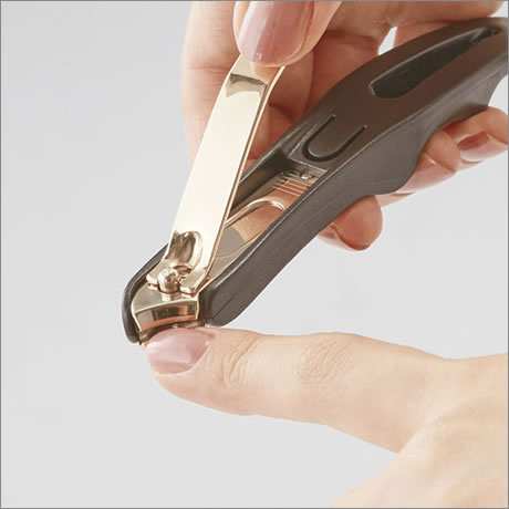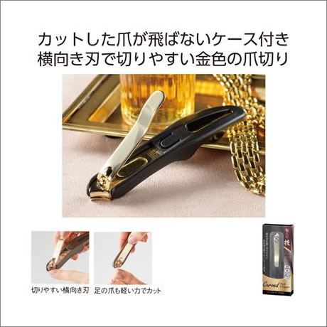 カットした爪が飛ばないケース付。横むきの刃で足の爪も軽い力でカットできます。