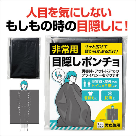 備蓄品として、非常用の簡易トイレが必要であるのはもちろんですが、さらに「目隠しポンチョ」があると安心です!