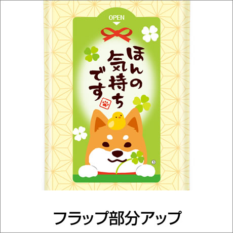 本体の「フタ」部分には、かわいい柴犬と「ほんの気持ちです」とのメッセージをデザインしました。
