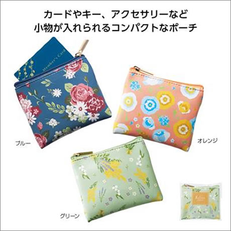 カートやカギ、アクセサリーなどの小物を仕分けて入れられる、ちいさなサイズのポーチ。