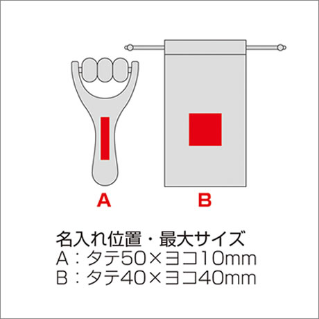 パッド印刷 1色 A:タテ50×ヨコ10mm、B:タテ40×ヨコ40mm いずれか指定