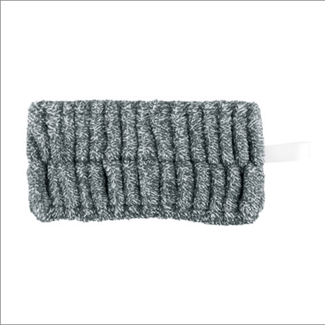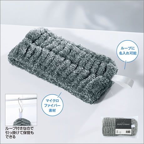 名入れが映えるシンプルなデザイン。シャーリングがお洒落なヘアターバン。