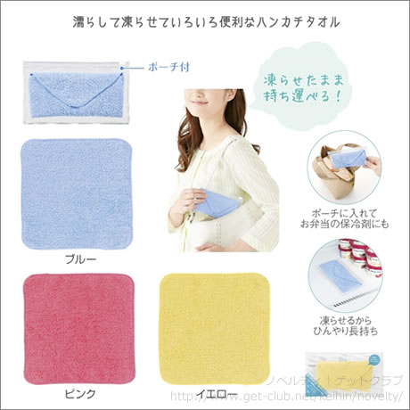 ハンカチを濡らして、凍らせて、ポーチにいれればお弁当の保冷剤にもなります。