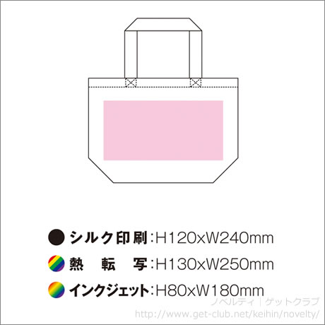 備考 | 刷り範囲:H120×W240mmシルク印刷 片面1色 ※フルカラー転写やインクジェット印刷はデータ確認が必要です |